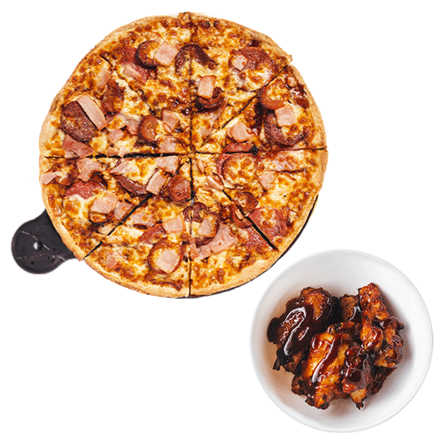 Any Large Pizza + BBQ Chicken Wings$29.90