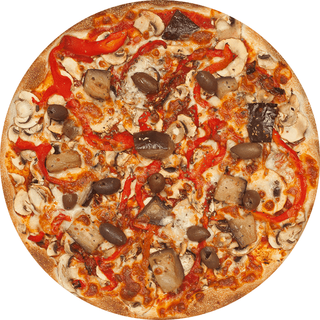 LRG Vegan Lovers$25Tomato Garlic Base, Spinach, Mushrooms, Spanish Onions, Fresh Capsicum, Grilled Eggplant, Cherry Tomatoes, Olives and Vegan Cheese topped with Vegan Aioli