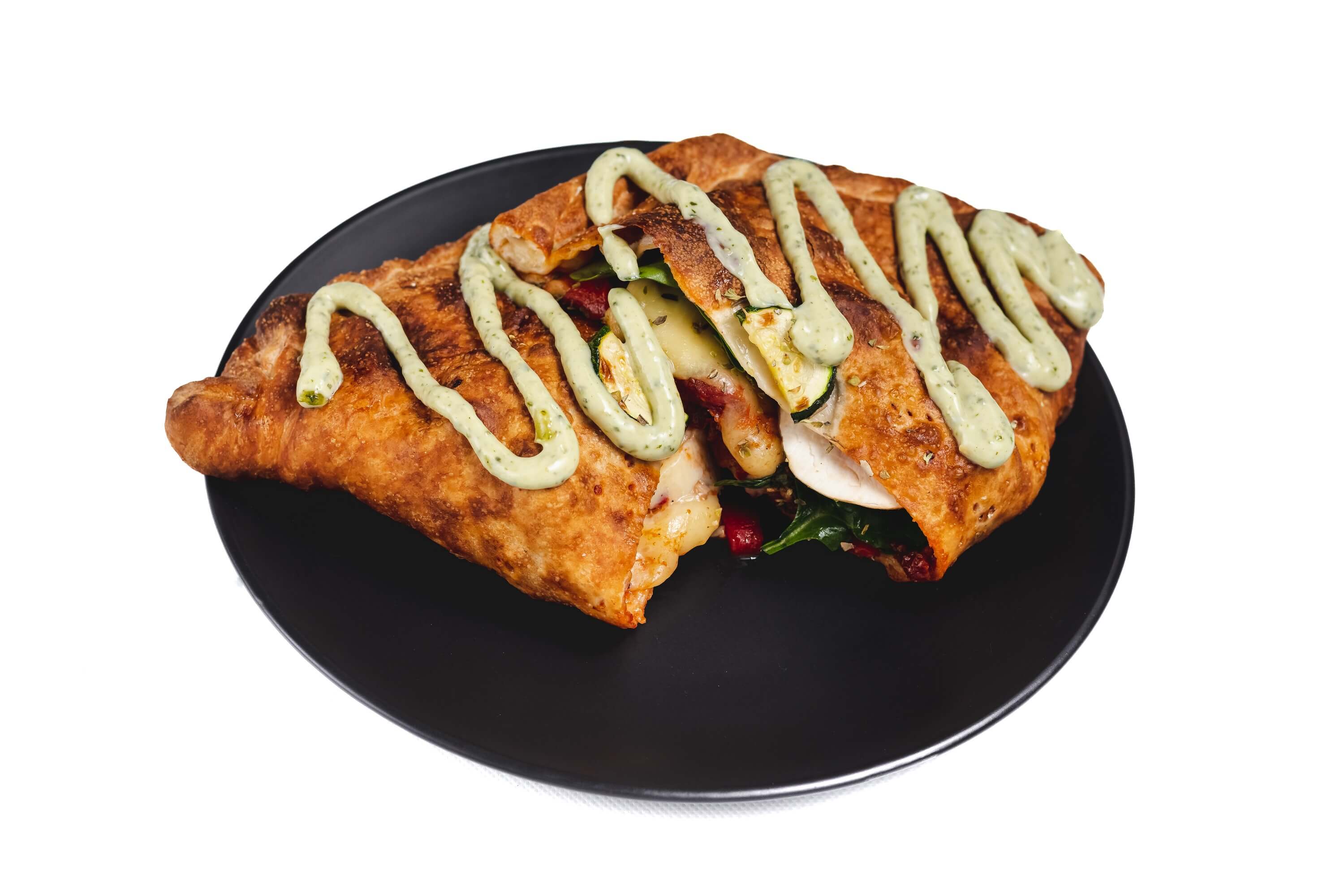 Vegetarian Lovers - Calzone$13Tomato Base, Sundried Tomatoes, Spinach, Grilled Eggplant, Mushrooms, Roasted Capsicum, Artichokes, Zucchini, Mozzarella, Oregano and Bocconcini topped with Pesto Aioli.